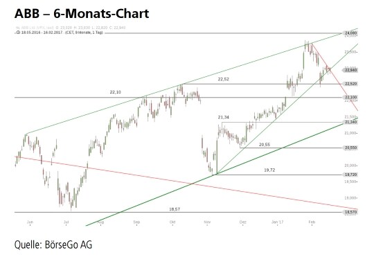 Rückblick: Die Aktien von ABB befinden sich seit Januar 2016 innerhalb einer Aufwärtsbewegung, nachdem ein Tief auf der 15,94 CHF-Marke ausgebildet wurde.