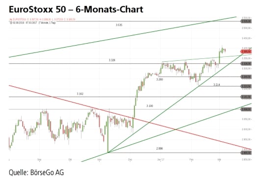 Rückblick: Der EuroStoxx 50 konnte sich erst im Dezember 2016 aus einer mehrmonatigen Seitwärtsbewegung lösen, stieg aber in der Folge auch sehr schnell an.