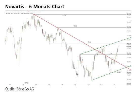 dort ausgehend von der 76,60 CHF-Marke eine Zwischenkonsolidierung