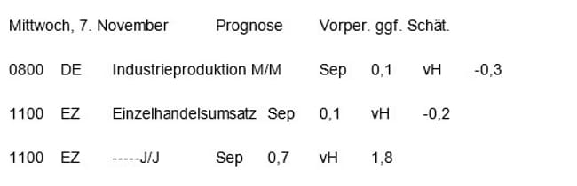 Der Dow Jones reagierte zunächst freundlich und stieg in der Nacht um nahezu 200 Punkte jedoch halbiert der Index diese Gewinne zur Stunde. Ein Grund könnte sein, dass es der Wahlausgang Trump künftig deutlich erschweren wird die Märkte mit weiteren Steuergeschenken und auf Pump finanzierten künstlichen Konjunkturprogrammen zu stimulieren. Zwar könnte die Erholung noch bis in den Bereich bis 26.000 Punkte voranschreiten, jedoch dürften sich die Marktteilnehmer bis zum morgigen FED-Zinsentscheid zurückhalten.