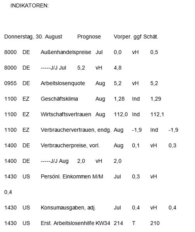 Indikatoren des Tages
