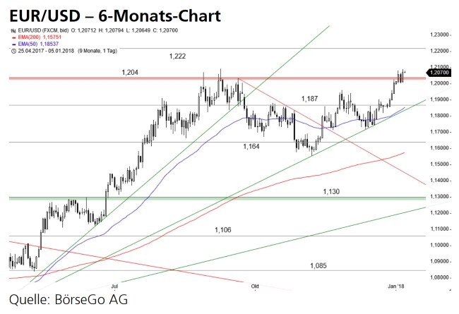 Kaufwelle bis an den Bereich um 1,222 USD. Dort könnte eine vorübergehende Korrektur einsetzen. Nach Abschluss einer