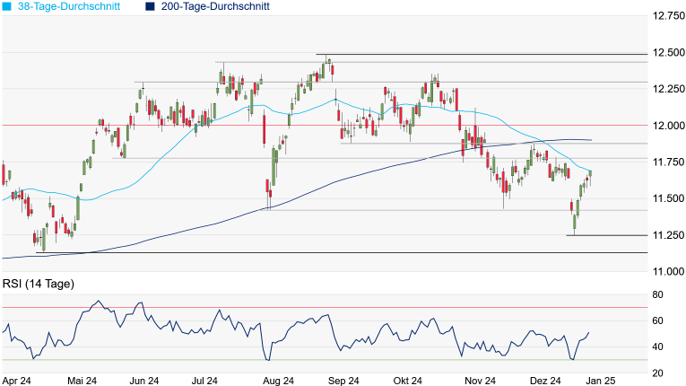 Punkten, das September-Tief bei 11.878 Punkten und die aktuell bei 11.899 Punkten verlaufende 200-Tage-Linie in den Fokus rücken könnten. Allerdings muss der SMI heute erst das Überqueren der 38-Tage-Linie bestätigen, denn die SMI-Indikationen notieren in der Früh leicht darunter. Verliert der SMI jedoch an Schwung, könnte es aus charttechnischer Sicht durchaus noch einmal in Richtung August-Tief bei 11.417 Punkten gehen.
